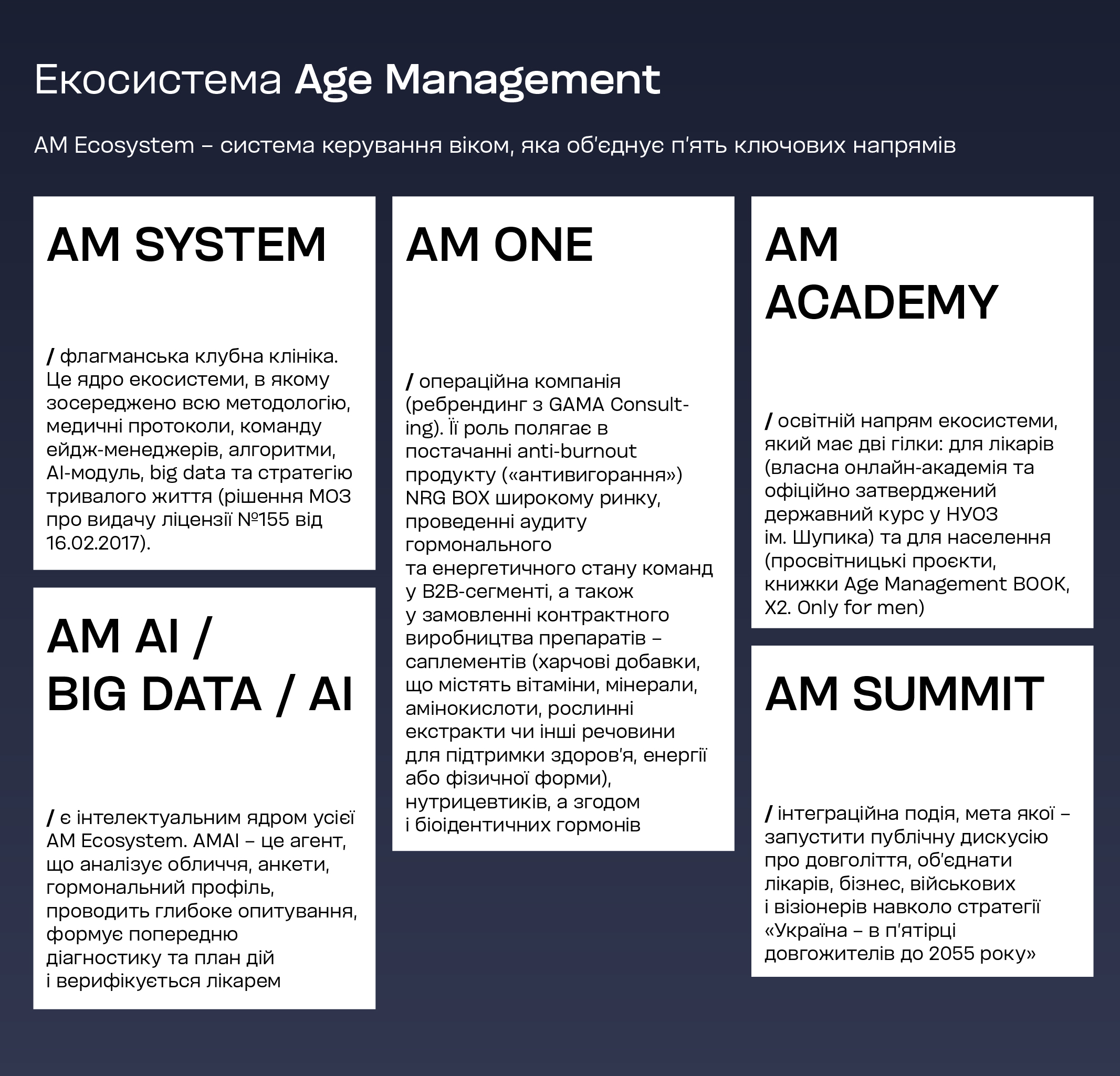 На цьому тлі AM Ecosystem пропонує бізнесу модель resilient longevity – керованого, стійкого довголіття, де здоров’я й енергія співробітників стають вимірюваним активом, а не «соціальним бонусом».
