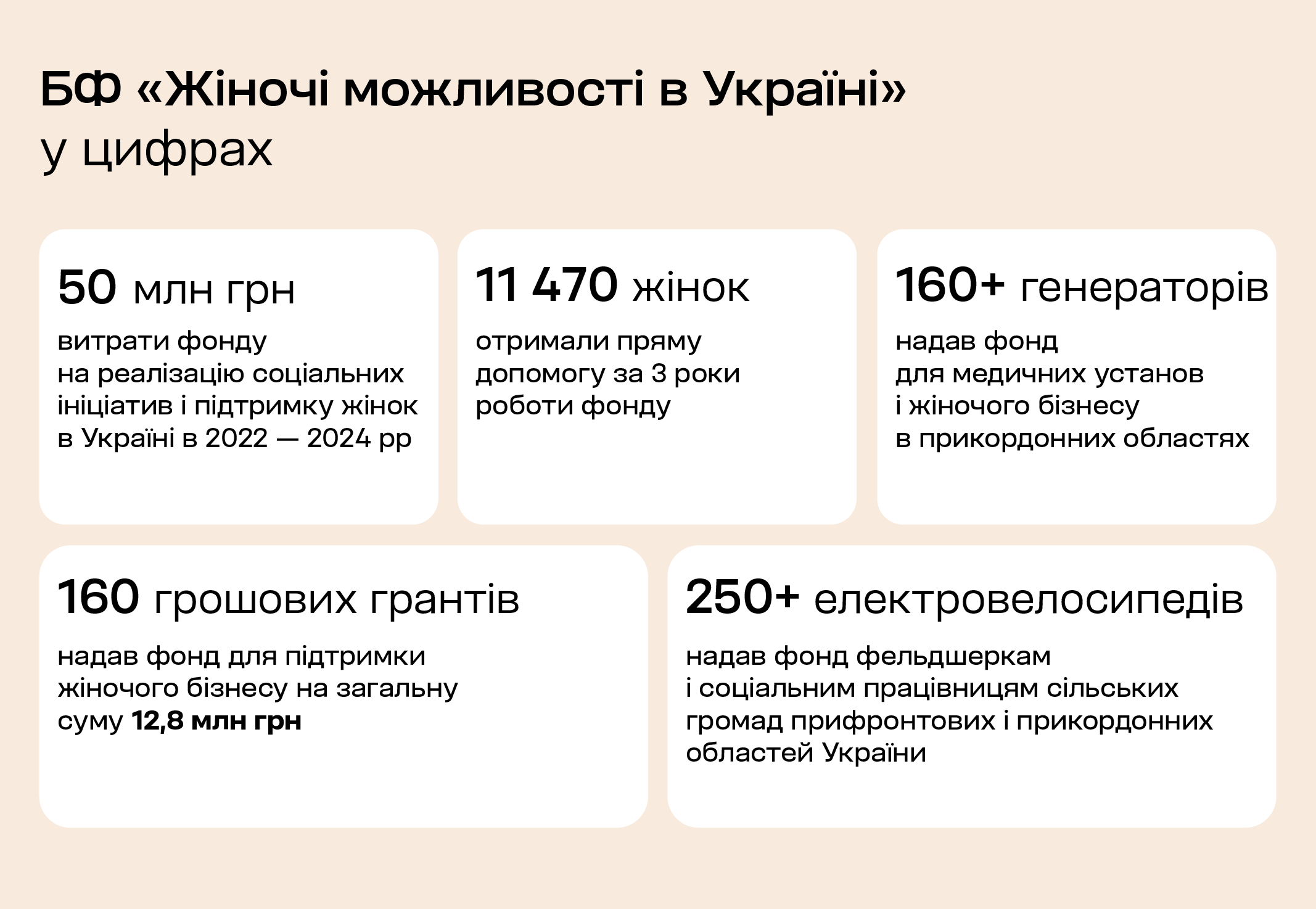 Під час блекаутів ми придбали та передали понад 160 генераторів школам і медичним установам. Окремо провели три хвилі конкурсу «Підживлюємо бізнес», де розігрували гранти на закупівлю генератора та EcoFlow для малого жіночого бізнесу.