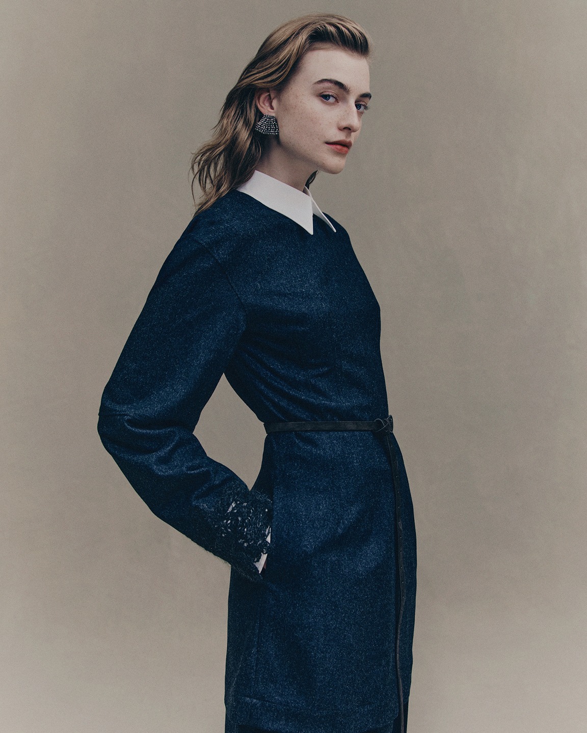 Основу палітри складають насичені відтінки: амарантовий, гарбузовий, редисовий, сапфіровий і хмарний, збалансовані глибокими сірими, бежевими та фірмовими відтінками синього. Текстильна фактура підсилює колірну гру: вовняні тканини з м’яким ворсом, денім із необробленими краями, пофарбовані вручну матеріали – все це створює візуальну глибину та багатовимірність кожного комплекту.