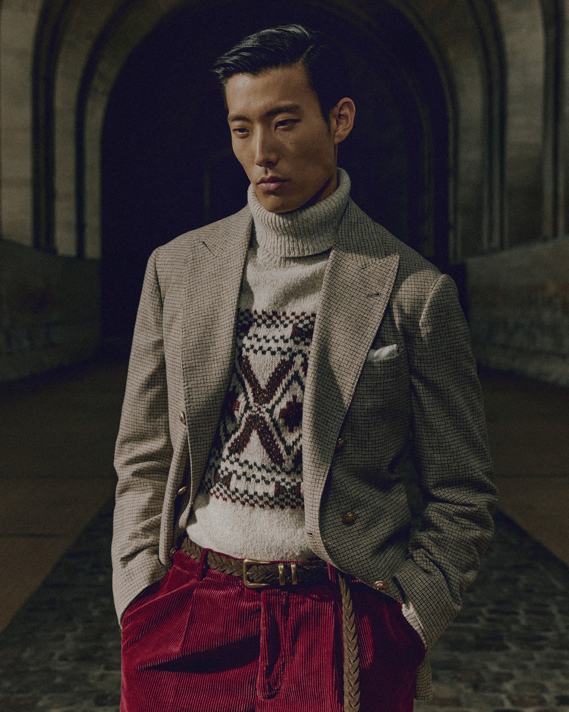 У прочитанні Brunello Cucinelli – це повернення до суті класичного чоловічого стилю, переосмисленого крізь призму сучасності. Кожен образ віддзеркалює ідею особистої ідентичності, де традиція поєднується з інновацією, а форма — з функцією.
