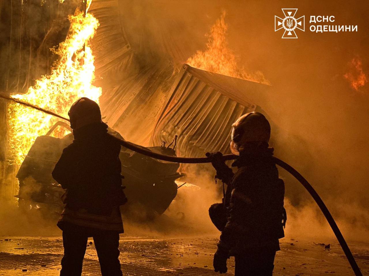 - Унаслідок ударів сталися пожежі у двох приватних будинках, адміністративній будівлі автозаправної станції та в порту, де загорілися контейнери з рослинною олією та дерев’яними пелетами.