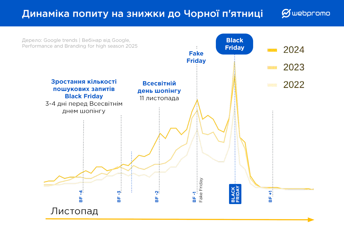 Дві третини покупців розпочинають пошук у Google чи Youtube. В агенції Webpromo радять бізнесу інвестувати у ремаркетинг протягом усього сезону знижок, використовувати прозорі цінові переваги, спиратись на омніканальну систему та акцентуватись у комунікації на конкретних перевагах і вигодах продукту для споживача.