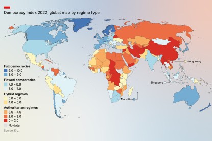 Категория Мир Дата 02 февраля 2023 Россия на пути к диктатуре, но две трети мира нейтральны или поддерживают ее. Разбор «Индекса демократии – 2022» от The Economist